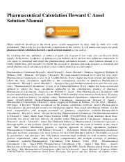 VCU - Reading Online PHARMACEUTICAL CALCULATION HOWARD C ANSEL SOLUTION MANUAL Epub Gutenberg